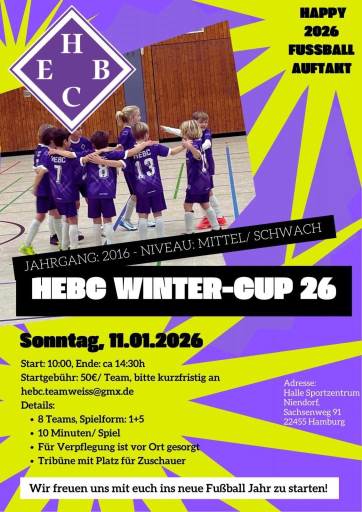 Der HEBC veranstaltet am 10. & 11. Januar ein Auftakt-Hallenturnier ins Jahr 2026. Schaut gerne vorbei und unterstützt unsere Teams!